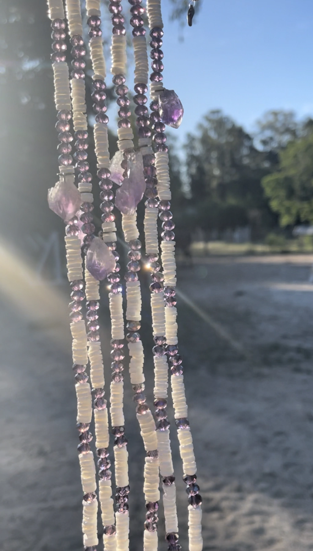 AMATISTA:Collar con piedra natural amatista, piedra natural nacar.